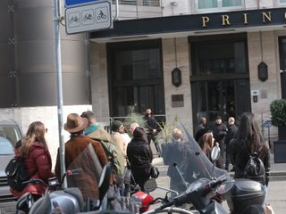 Persino gli spostamenti verso i Prodea Led Studios, sede distaccata di Tuscany Film Studios di Andrea Iervolino, dove si svolgono le riprese, avvengono nel massimo della segretezza. Proprio Iervolino verso le 13 è entrato e subito uscito dall'hotel, probabilmente per dirigersi verso gli studi.