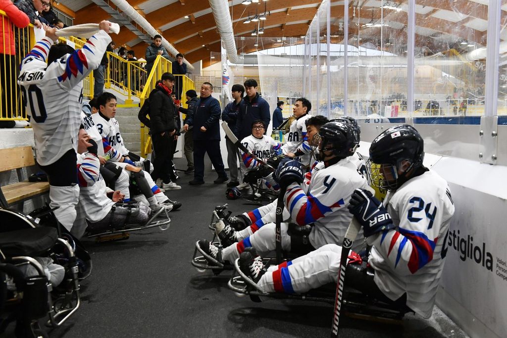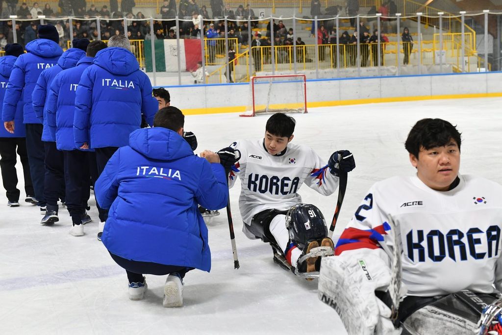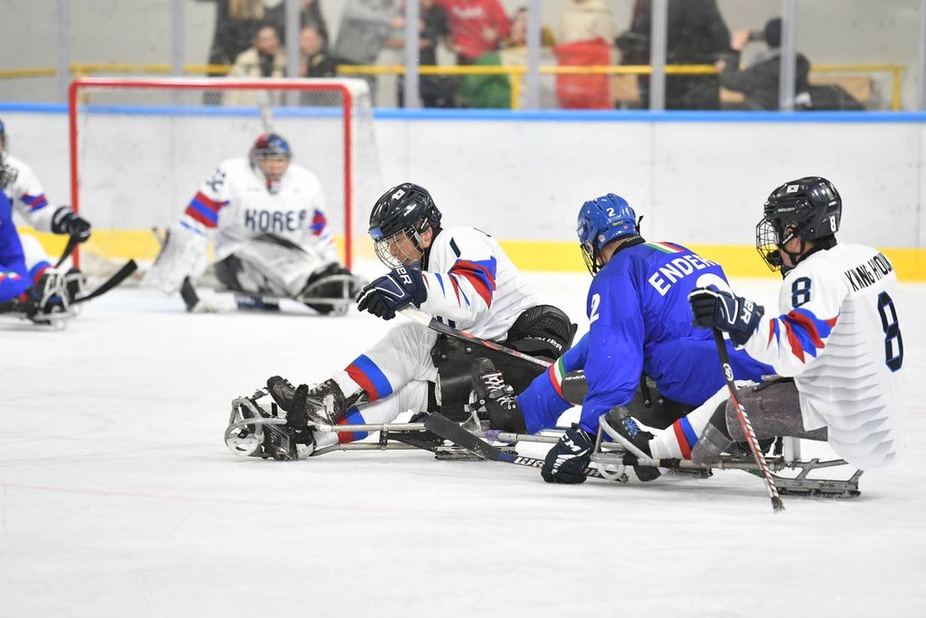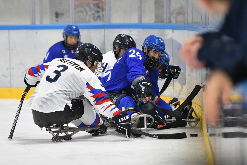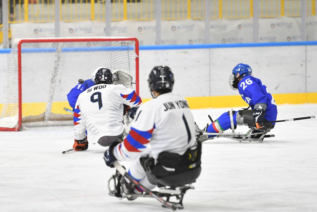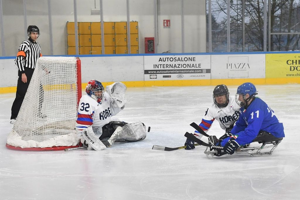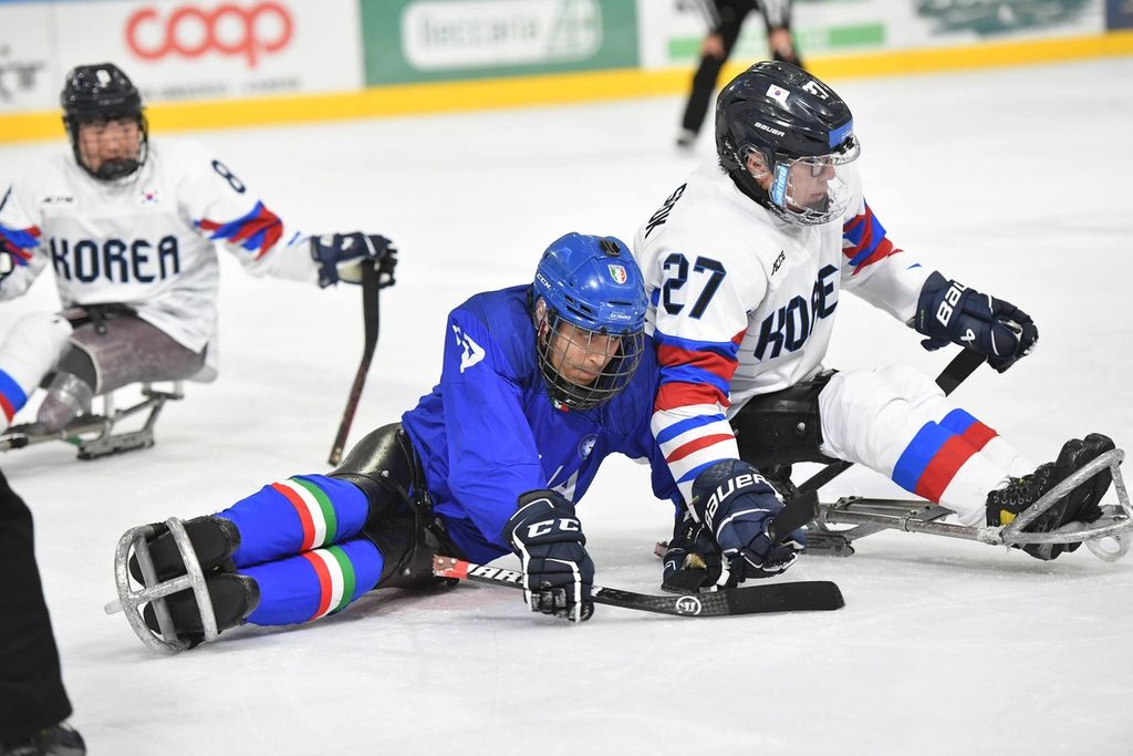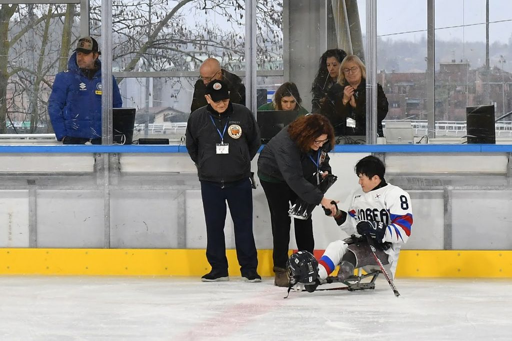 È stata una mattinata sorprendente per la capacità di trasmettere emozioni agli oltre 500 studenti e al pubblico presenti all'Acinque Ice Arena, ma anche agli atleti in pista, quella del Torneo internazionale di Para Ice Hockey "Memorial Ciaz". I ragazzi, tra bandiere tricolori, tifo sano e bellissimo, trombette e uragani di applausi hanno accompagnato gli azzurri alla vittoria per 4-3 sulla Sud Corea (primo gol di Alessandro Andreoni, ultimo e decisivo a un passo dal traguardo di Cristoph Depaoli dopo che l'Italia era stata da poco raggiunta sul 3-3: sotto nelle foto e in pdf il foglio gara), ma hanno anche intonato cori per la Sud Corea.