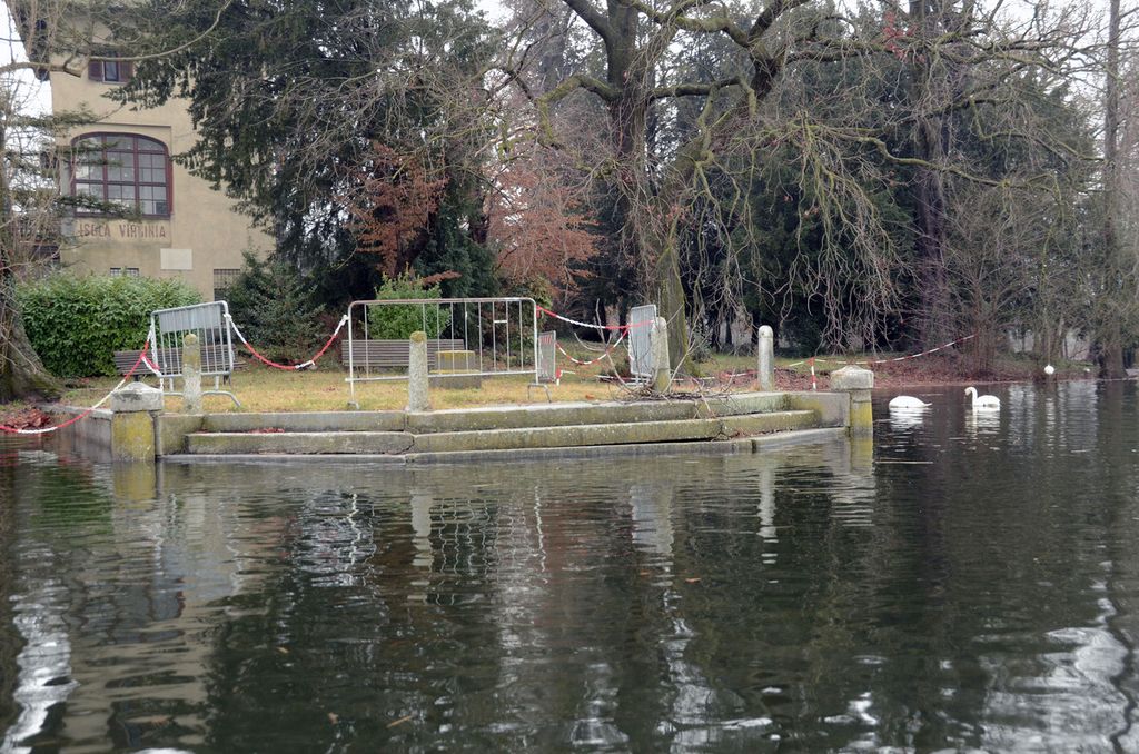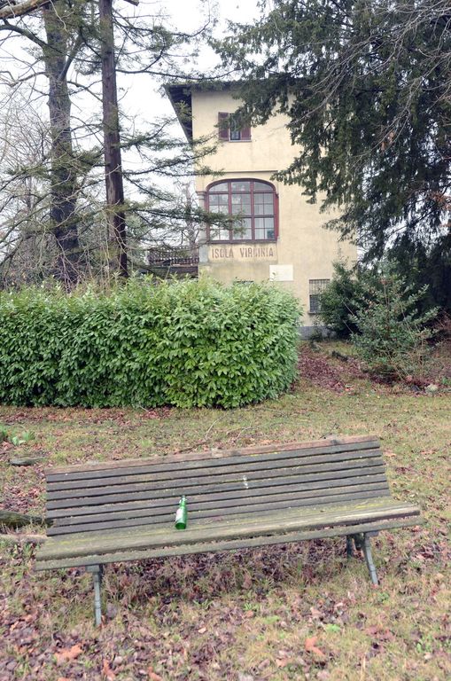 L’approdo all’isola, intitolata il 26 settembre 1878 a Virginia Ponti che tolse lo scettro a donna Camilla Litta, è traumatico, il vecchio pontile di pietra sta letteralmente affondando, rotto in più punti e delimitato da una catenella bianca e rossa e da alcune barriere, una pianta ha “abbracciato” uno dei pilastri sgretolandone la base. Poco distante, sulla panchina di legno dove crescono ormai i licheni, giace una bottiglia di birra vuota, simbolo di un degrado senza fine, testimoniato da rami disseminati ovunque, alberi gravemente danneggiati, cartelli segnaletici illeggibili, foglie secche ovunque.