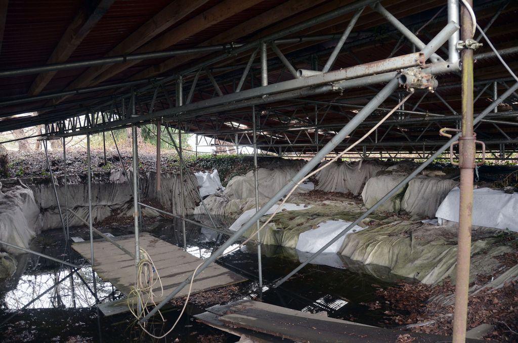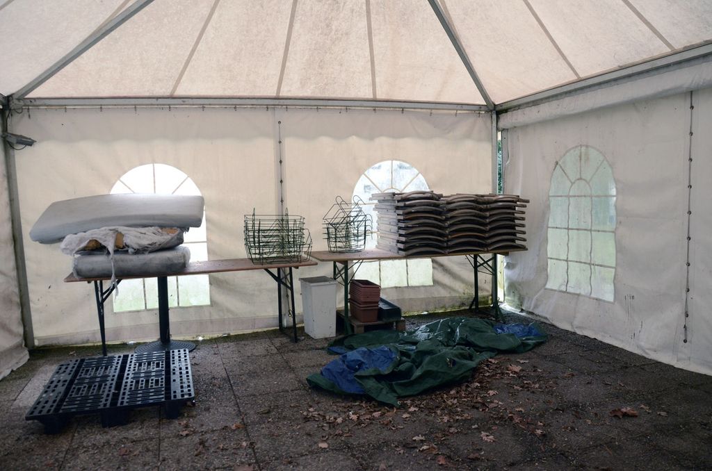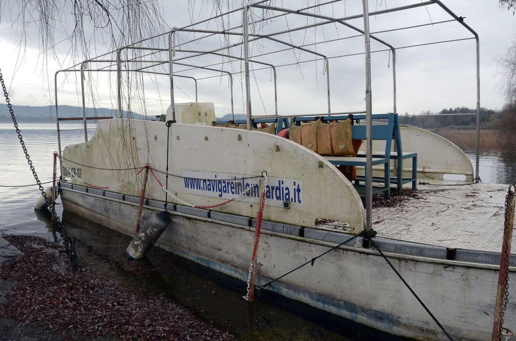 L’incubo prosegue non appena mi avvicino alla struttura del ristorante, chiuso dal maggio 2023 quando l’ultimo gestore, Luigi Lanzani, lo ha lasciato per trasferirsi a Besnate. Le porte sono piene di ragnatele così come il sottotetto della veranda a lago, e i due gazebo esterni sporchi e pieni di foglie secche. L’imbarcazione che trasportava i gitanti dalla “Strencia” all’isola è lasciata a sé stessa, senza una copertura, con ancora il motore fuoribordo e i salvagenti ormai ammuffiti legati alle panchine interne. Ai lati dello scafo, nell’acqua si vedono diverse tegole rotte e altri rifiuti, uno scenario di totale desolazione.