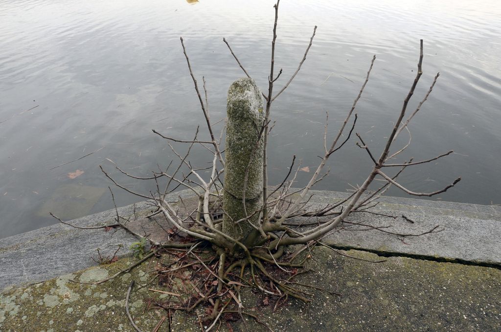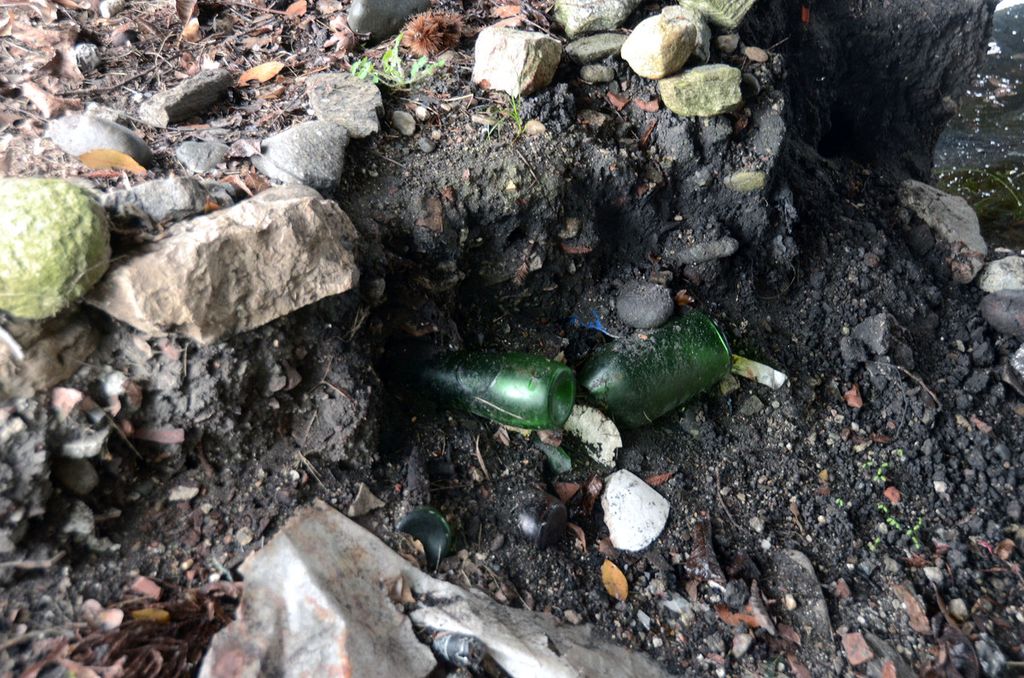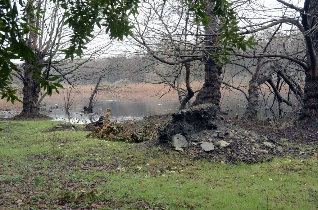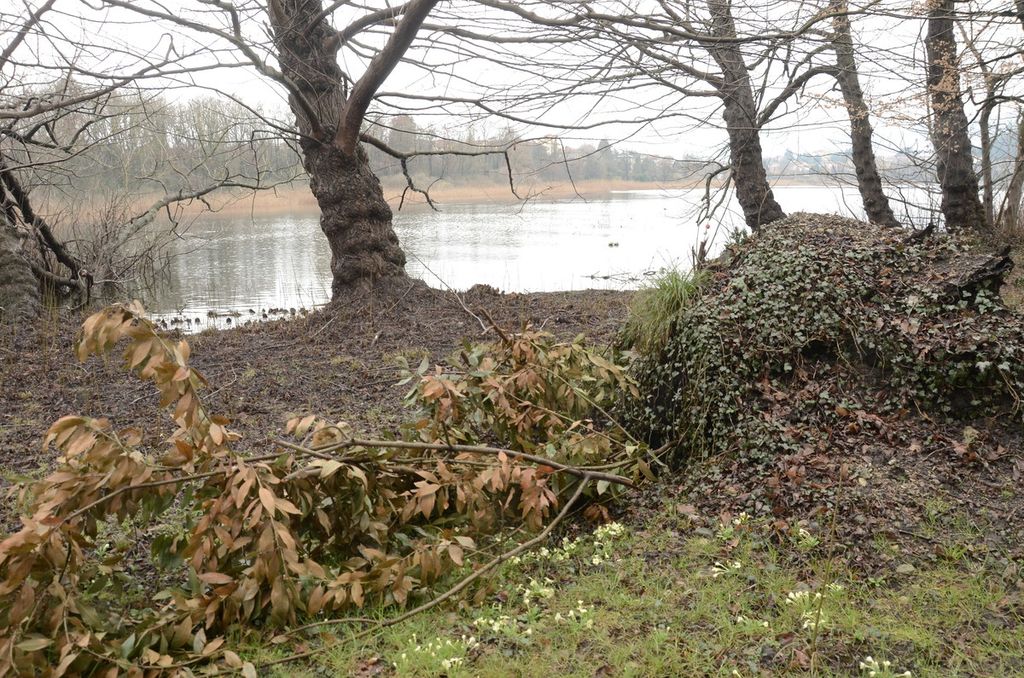 Non va certo meglio all’interno dell’isola, dove si compivano gli scavi archeologici. Tutto è allagato, e dal terreno emergono, al posto di punte di selce, ceramiche e resti di palafitte, bottiglie di vetro rotte e pezzi di sacchi di plastica. Intorno, tubi arancioni di plastica abbandonati vicino al capanno degli attrezzi. Cammino verso la punta che dà su Cazzago Brabbia e un po’ ovunque ci sono rami secchi, tronchi segati e resti di fiori di loto, il Tesinell, braccio di lago tra l’Isolino e la terraferma, non è più navigabile per l’infestazione di piante di loto che nessuno sfalcia.