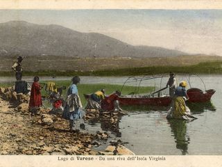 A casa mi consolerò guardando le vecchie cartoline in bianco e nero, con le barche dei pescatori che “metteven giò i reet” proprio davanti allo chalet di legno, e quelle degli innamorati che attraccavano al moletto di pietra e prendevano il sole sul praticello, prima di bagnare i piedi nell’acqua limpida del lago. Una cartolina colorata mostra addirittura le donne di Biandronno in trasferta all’Isolino a lavare i panni sulle pietre affioranti dall’acqua e i barcaioli che le osservano con il cappello in testa e l’immancabile gilet. E mi sembra di riascoltare la voce di mio padre che mi dice: «Nemm denter a r’Isula a mangià quaicoss», dopo un mattino di pesca e di sole.