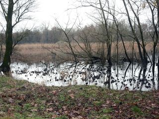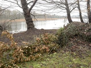 Non va certo meglio all’interno dell’isola, dove si compivano gli scavi archeologici. Tutto è allagato, e dal terreno emergono, al posto di punte di selce, ceramiche e resti di palafitte, bottiglie di vetro rotte e pezzi di sacchi di plastica. Intorno, tubi arancioni di plastica abbandonati vicino al capanno degli attrezzi. Cammino verso la punta che dà su Cazzago Brabbia e un po’ ovunque ci sono rami secchi, tronchi segati e resti di fiori di loto, il Tesinell, braccio di lago tra l’Isolino e la terraferma, non è più navigabile per l’infestazione di piante di loto che nessuno sfalcia.