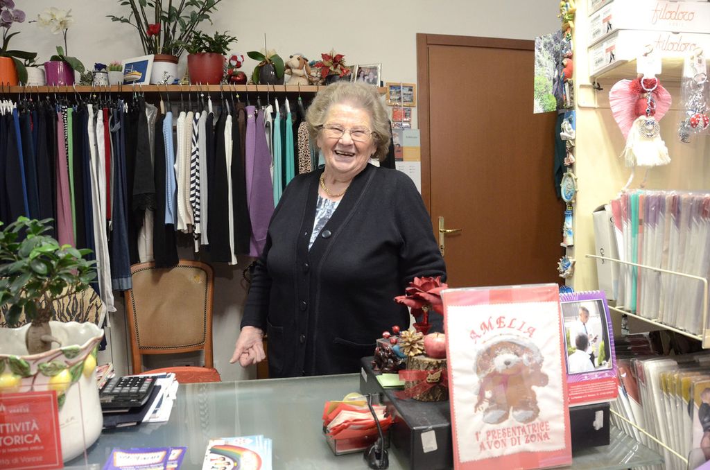 Tra le mille cose che la sciura Amelia fa, c’è anche la venditrice per la ditta di cosmetici Avon: «Collaboro con loro da 45 anni, sono la prima presentatrice Avon di zona da molto tempo. Oggi però, oltre a istruire le giovani venditrici, ho i prodotti qui in negozio, non ce la faccio più ad andare porta a porta come una volta. Anche Avon è cambiata, un tempo vincevo molti viaggi come riconoscimento alla mia attività di venditrice, adesso tutto è più burocratizzato».