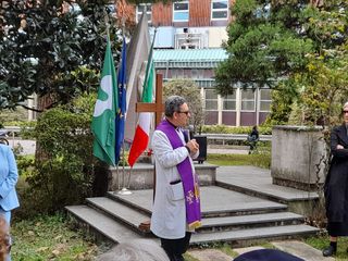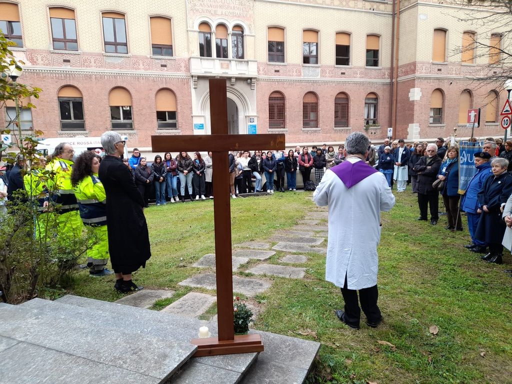 Guida della preghiera affidata a don Fabrizio: «C'era voglia di fare qualcosa, di avvicinare i pazienti. E l’impossibilità di accedere ai reparti Covid. Quanti volti, storie, drammi in questa commemorazione. Ricordo un operatore davanti a otto posti letto, tutti occupati. Di questi, non se ne salva neanche uno, disse».