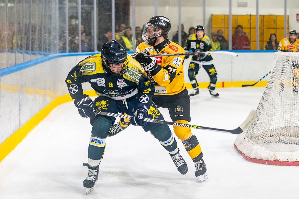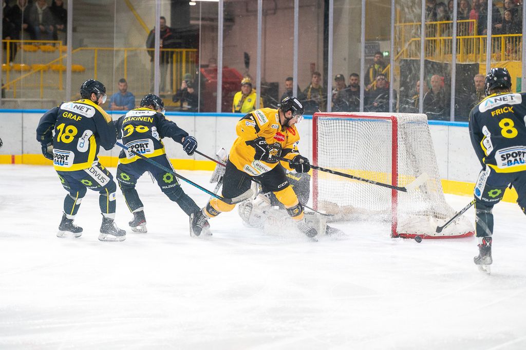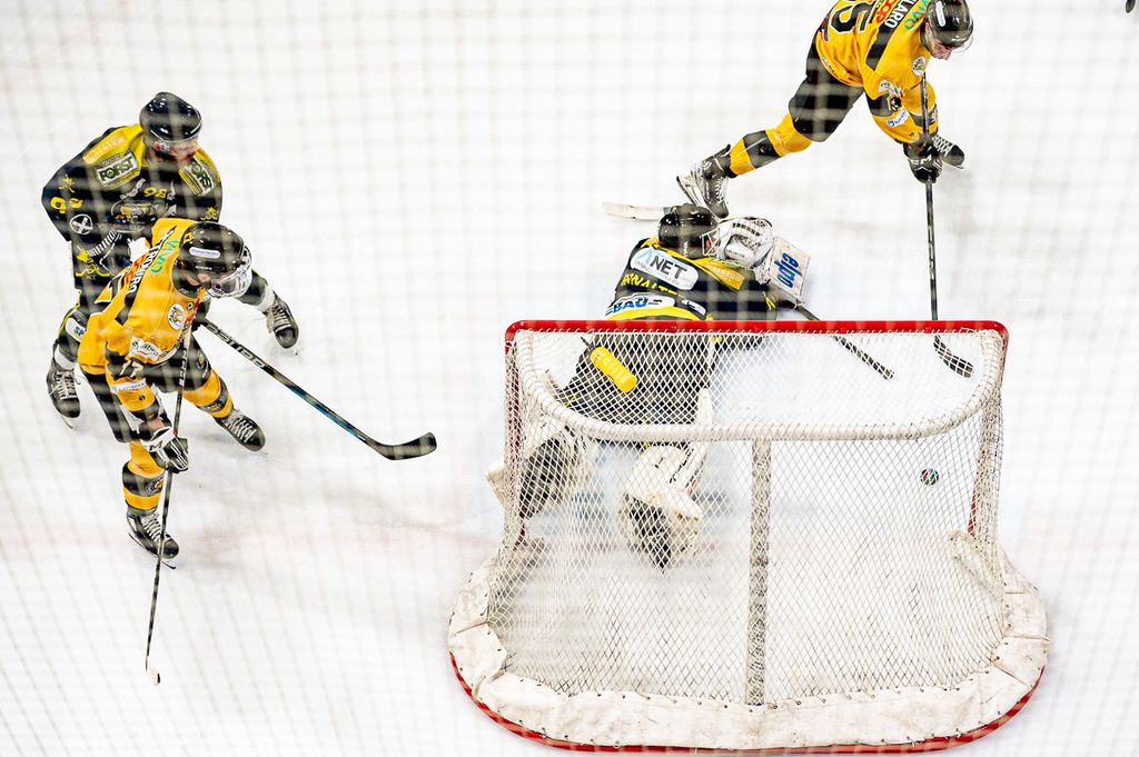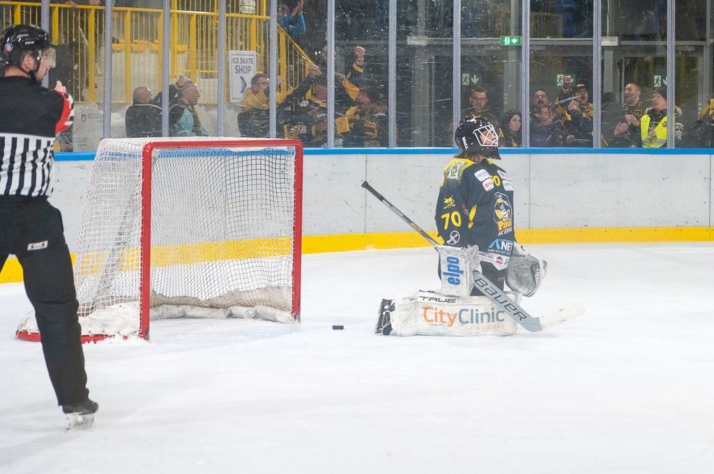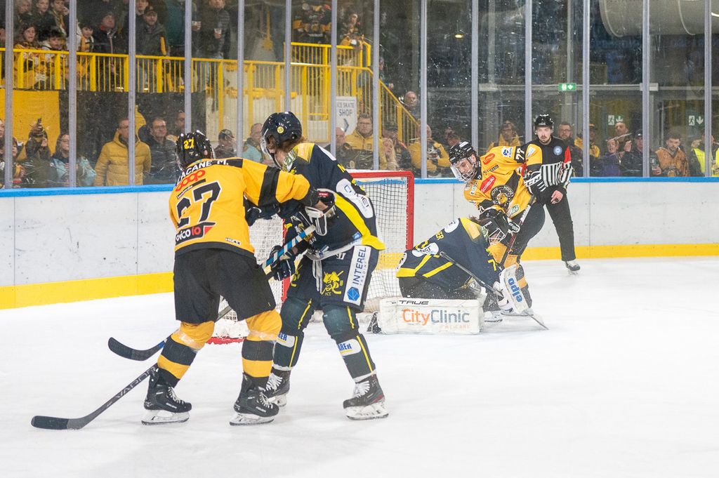 Secondo tempo da crepacuore in un ambiente da brividi: si gioca in un frastuono assordante di trombe e, così, questo pandemonio soffia fuori il disco del 3-1 di Matthias Oberrauch e anche quello di Tombolato, mentre soffia dentro quello di Marcello Borghi del 2-2, un fulmine nel pieno dell'incendio giallonero. Con quello che è capitato nel primo tempo, è il minimo. C'è anche Pietroniro, che litiga con il gol due volte: prima prova a entrare in porta con il disco, murato, poi mette fuori un tiro dei suoi. Comunque è lì a provarci e a battere sul ghiaccio come un fabbro.