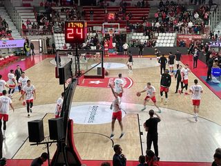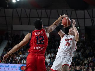 Dopo le due sconfitte consecutive in Italia, i biancorossi ritrovano il gusto di combattere, di difendere (anche con inediti accorgimenti tattici, al cospetto del gigante Boutsiele e dell’attaccante in post Cavanaugh) e di accendere un pubblico forse non numerosissimo (3700 paganti circa: la situazione di classifica in Serie A ha probabilmente un po' scoraggiato...) ma di certo connesso con la squadra e con la posta in palio.