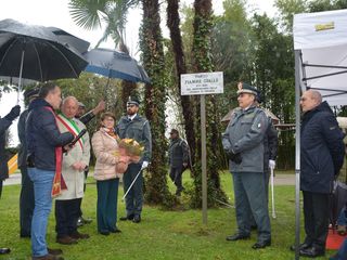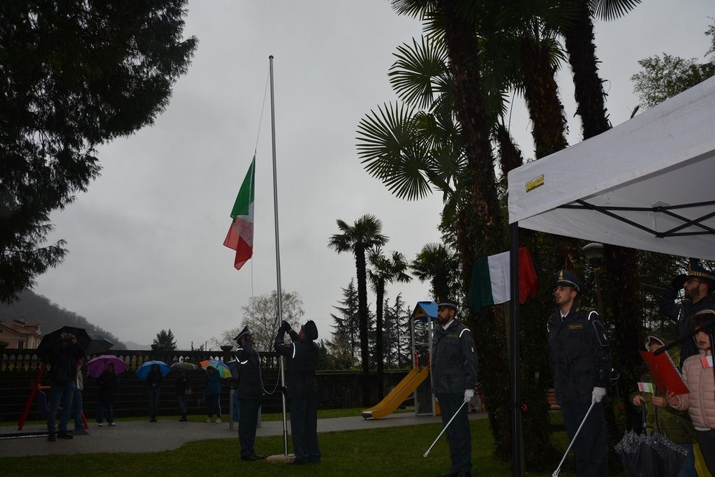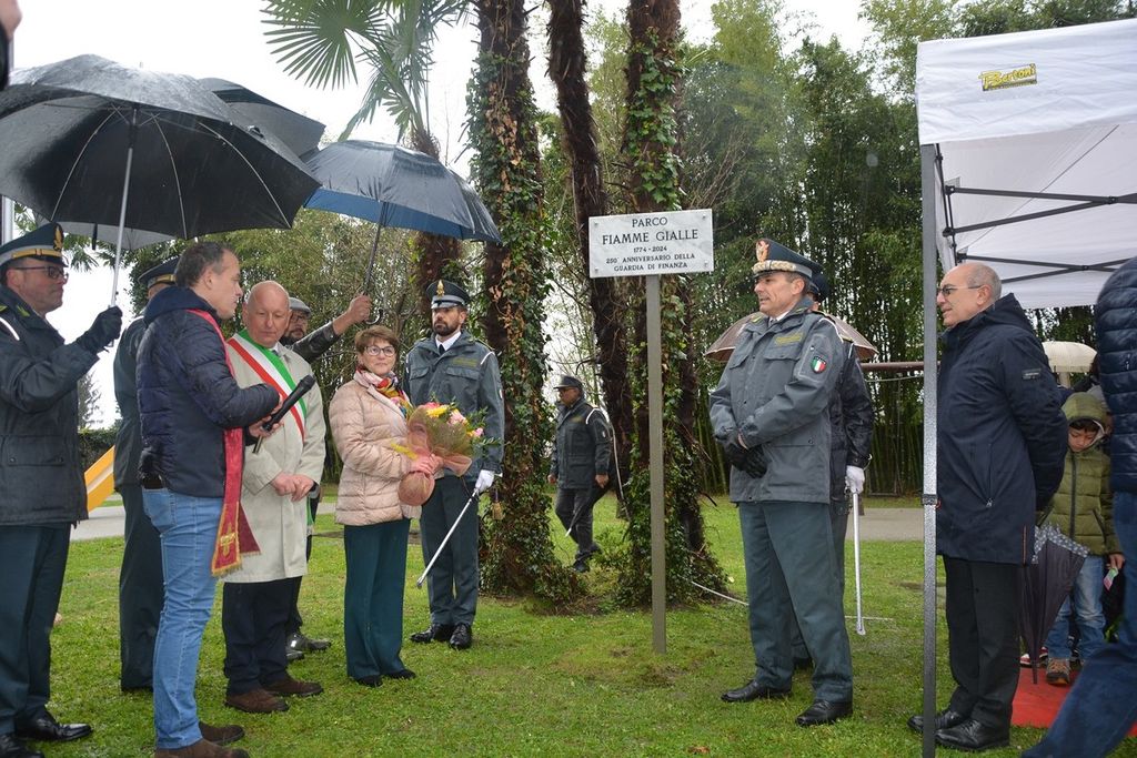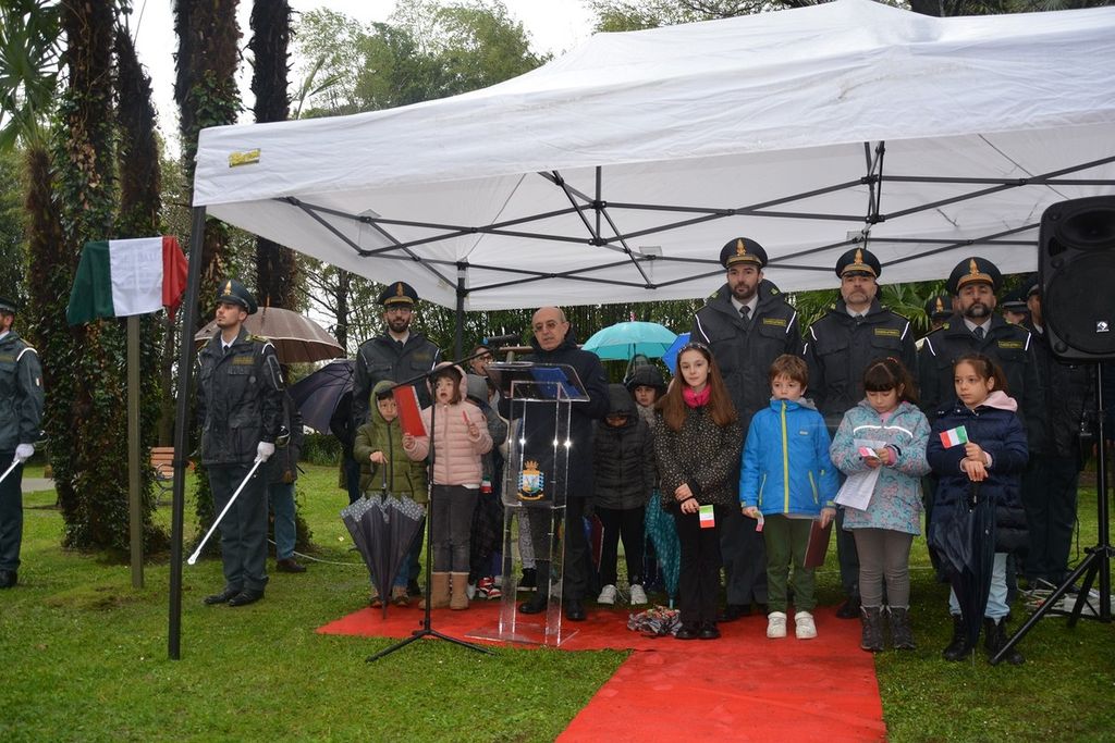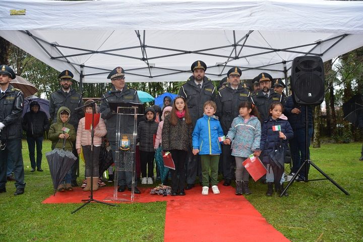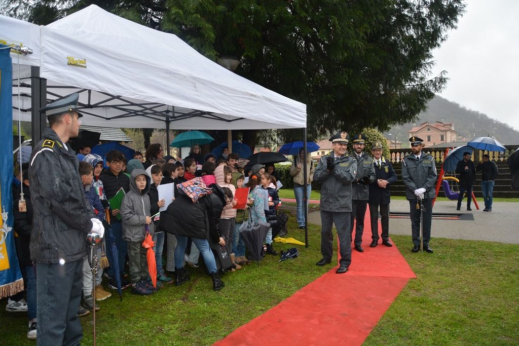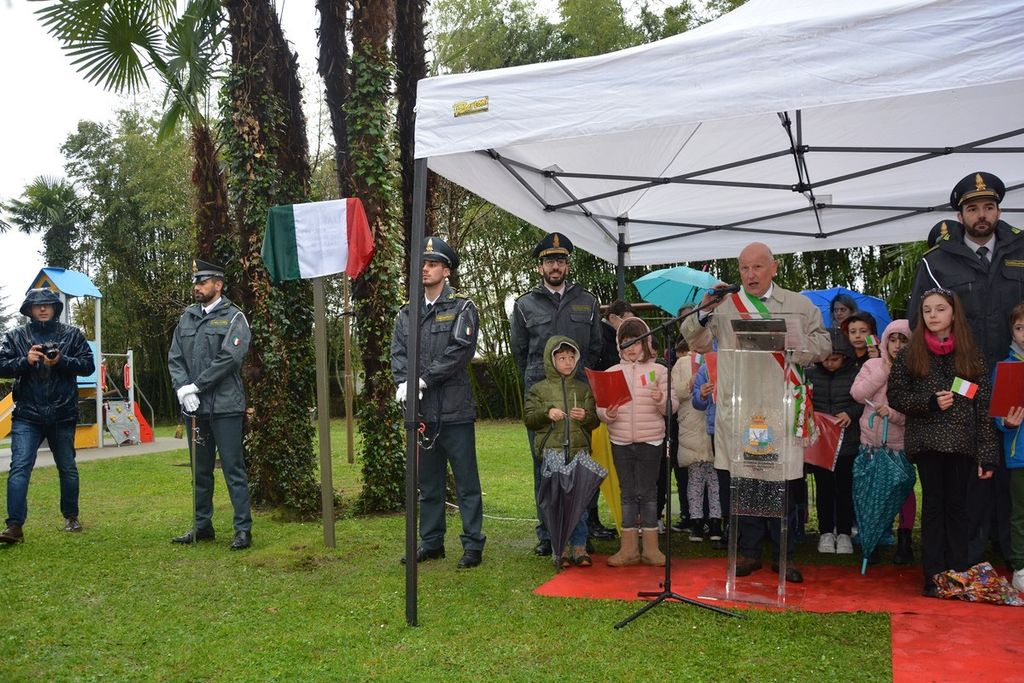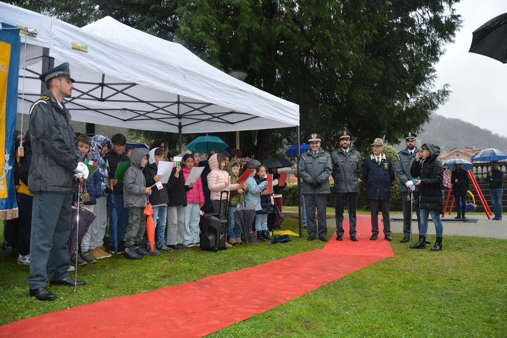Dopo l’alzabandiera, il Comandante Provinciale della Guardia di Finanza di Varese ha evidenziato come l’intitolando parco, «simbolo di valori quali giustizia, solidarietà e sacrificio, costituisca un dono per le future generazioni», rappresentate nell’occasione da un gruppo di alunni della Scuola Primaria Guglielmo Marconi di Maccagno con Pino e Veddasca.