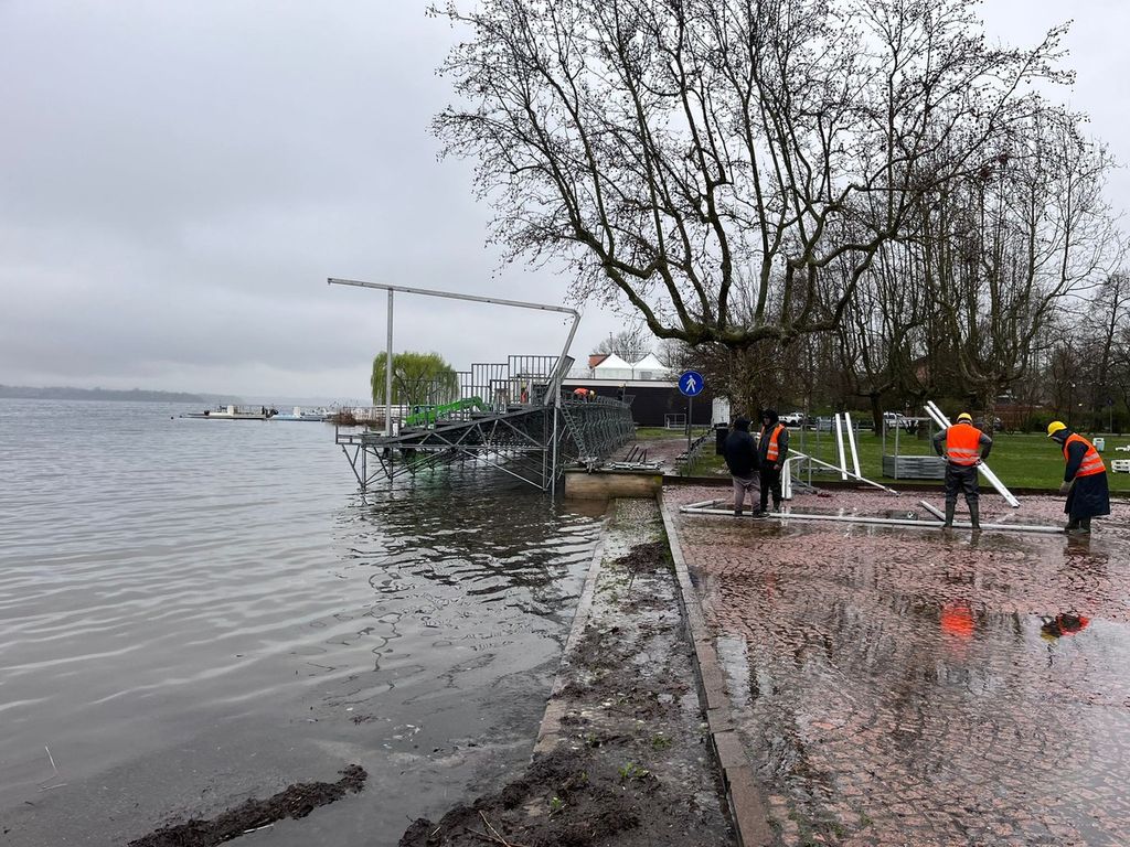 Al momento non si registrano particolari problemi: alla Schiranna, dove sono in corso le operazioni di montaggio delle impalcature in vista della tappa varesina della coppa del mondo di canottaggio in programma dal 12 al 14 aprile. «La situazione del lago è impegnativa - ha spiegato il direttore generale della Canottieri Pierpaolo Frattini - ma per il momento sotto controllo».
