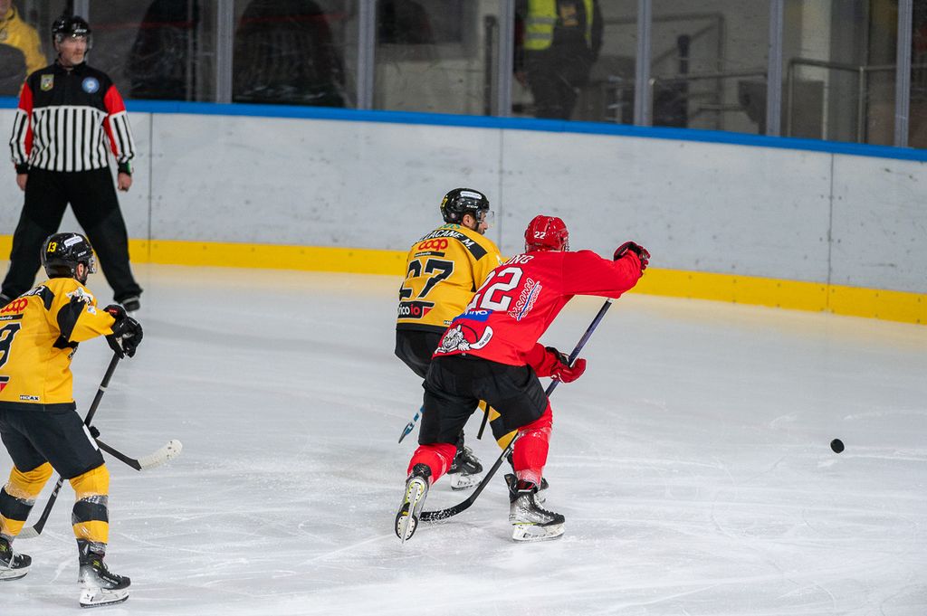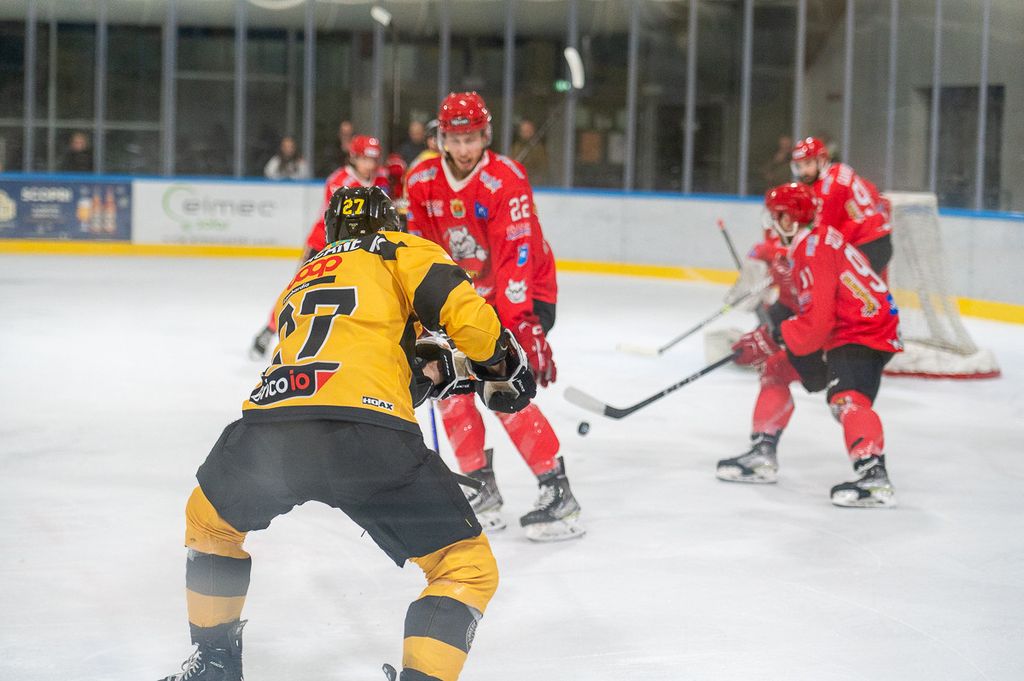 Si riparte: il Varese è ancora in power play ma non raddoppia con Piroso e Borghi. Ci si aspetta un terzo drittel scoppiettante e così è… Sul primo errore giallonero della partita, con Vignoli che perde il disco a centrocampo, il Pergine arriva davanti a Perla e insacca con Berger. Il Varese prova a riprendere il filo del discorso (occasioni per Schina e Marcello Borghi), ma si espone ai contropiede ospiti: è allora San Perla a salvare ancora su Buono. Al 7’ però l’Acinque Ice Arena esulta di nuovo: è Marcello Borghi a trovare il jolly su assist di Piroso e Bertin. Pare il colpo del ko, ma non lo è. La beffa è dietro l’angolo ed è atroce: al minuto 14 e al minuto 18 arrivano i gol di Lemay e di Carmine Buono, che ribaltano incredibilmente la situazione. Finisce 2-3.