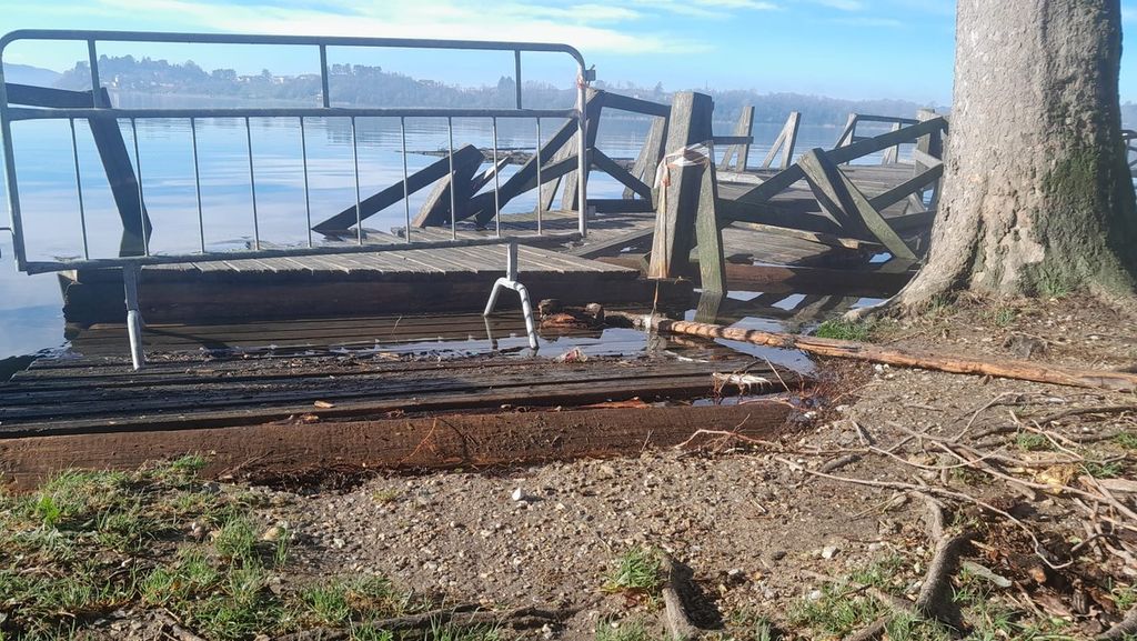 La pioggia e il vento degli scorsi giorni hanno lasciato segno del loro passaggio anche sul lungolago di Gavirate. Oltre all’innalzamento del livello delle acque, la passerella di legno è stata resa completamente inagibile. «Stiamo già pensando alla riprogettazione» dice il vicesindaco Parola.