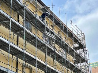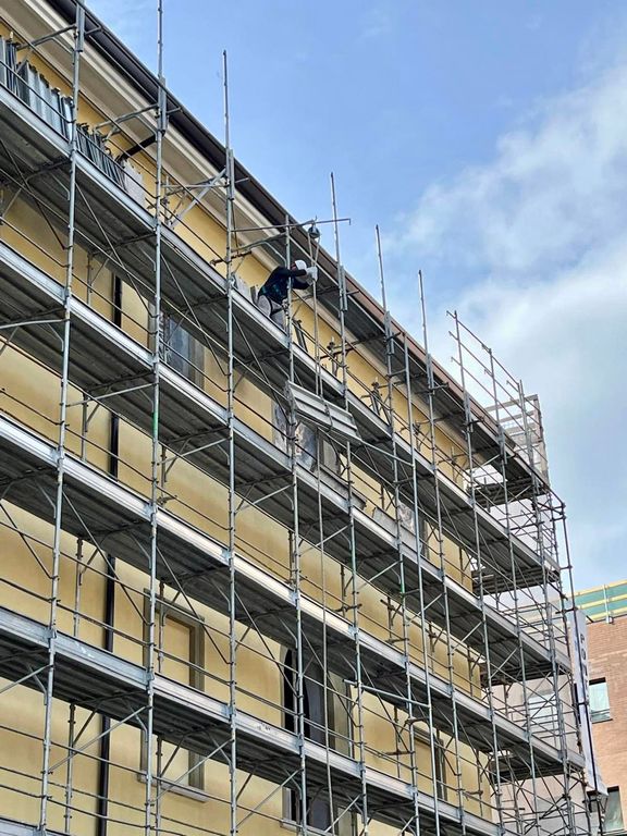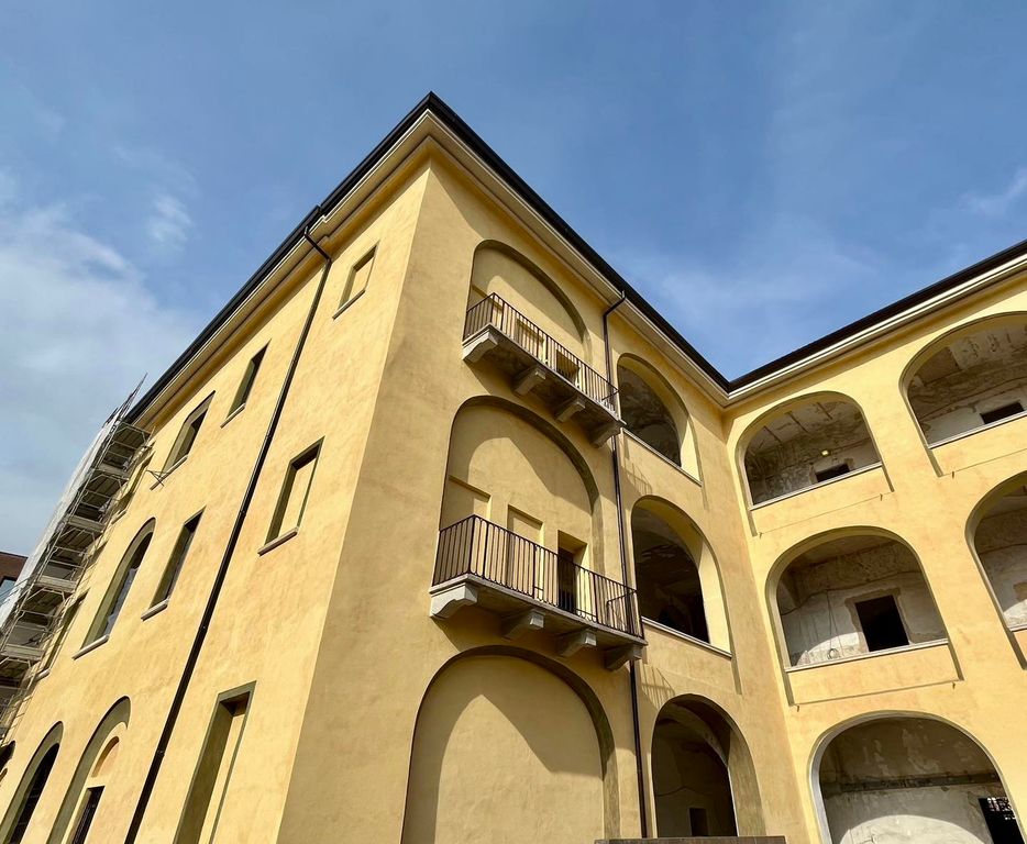 Continua a prendere forma anche visivamente il nuovo edificio all'ex caserma Garibadi di Varese. Nella mattinata di oggi gli operai hanno iniziato le operazioni di smontaggio dell'impalcatura usata per i lavori di riqualificazione dell’ex Caserma che diventerà il Polo culturale di Varese.