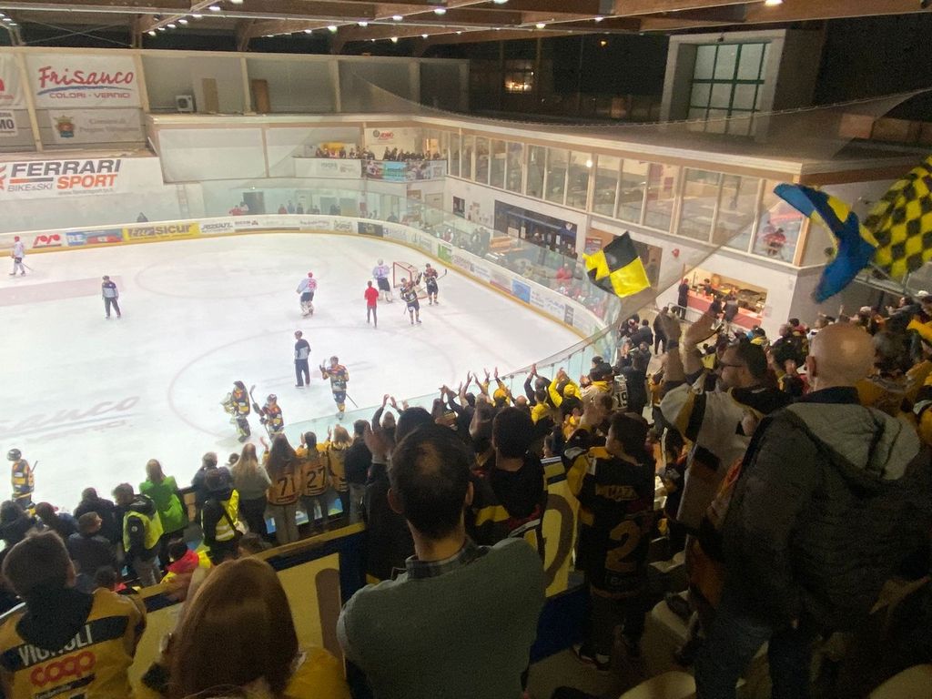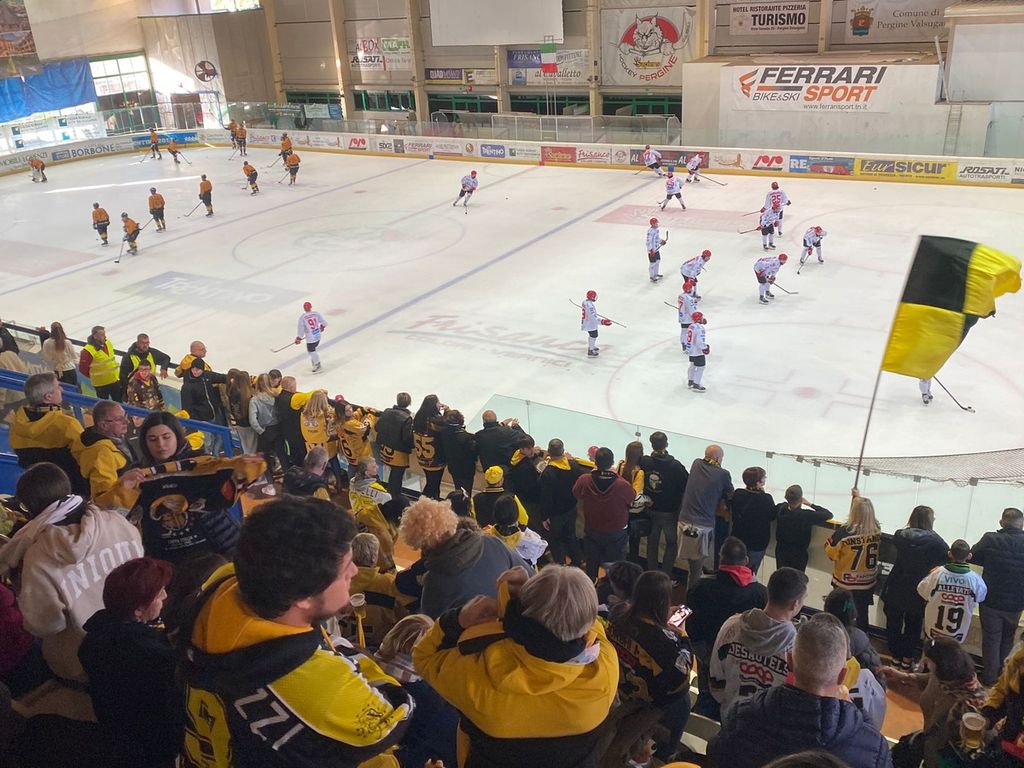 Siamo in diretta dallo stadio del ghiaccio di Pergine dove un incredibile muro giallonero sta per accogliere i Mastini in gara 4.