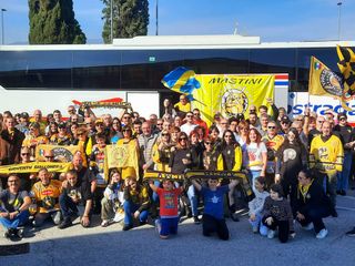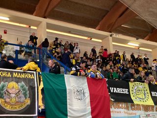 Continua ad aumentare la folla giallonera che sta riempiendo completamente un quarto di tribuna: potremmo raggiungere quota 300 varesini in trasferta, davvero impressionante (sotto le foto).