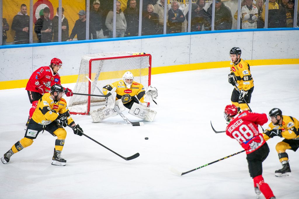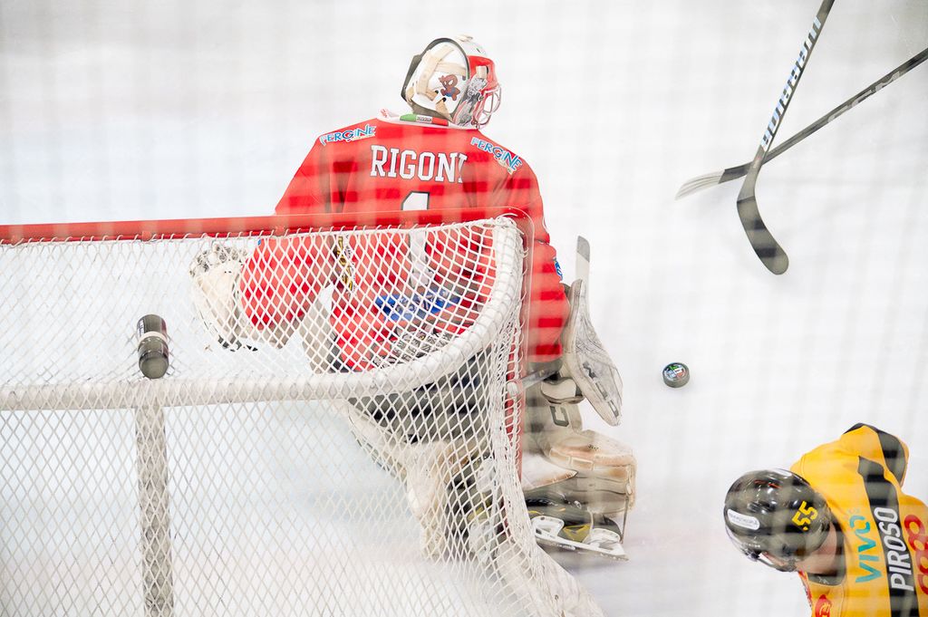 Primo tempo e 1-0 stretto per il Varese, ma Perla compie una parata miracolosa. All'azione iniziale del match parte Piroso e colpisce il palo, alla seconda lo stesso 55 è davanti a Rigoni ma gli tira in bocca prima che Tilaro si mangi ancora il vantaggio quando non sono passati nemmeno 4 minuti. La spinta però è feroce e così Garau rompe il sortilegio del power play insaccando con l'uomo in più nell'angolino opposto. Poi, in un primo tempo senza pause e pieno di agonismo e azioni, ecco Perla sdraiarsi e salvare su Christian Buono prima (è la parata che vale un gol) e poi ancora su Berger. C'è tempo anche per gridare contro gli arbitri (penalità a Tilaro dopo una non fischiata a Berger) prima che Borghi faccia urlare al gol: venti minuti da batticuore finiscono qui.