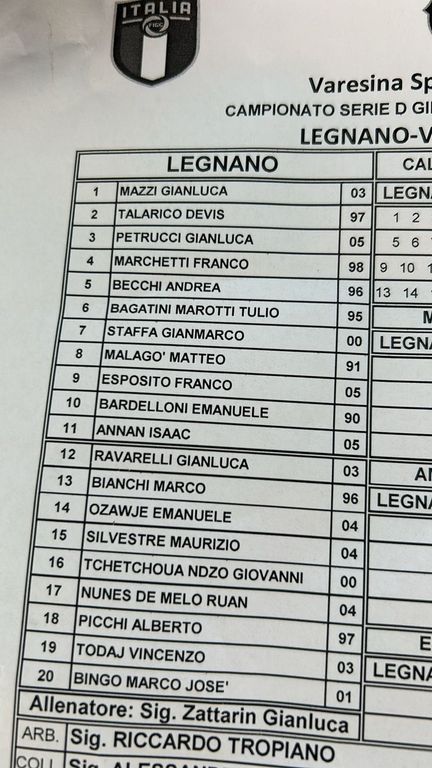 1' Si riprende al Franco Ossola senza cambi. Dentro Ciuffo e Amoabeng per Perin e Vigoni nella Varesina con il Legnano