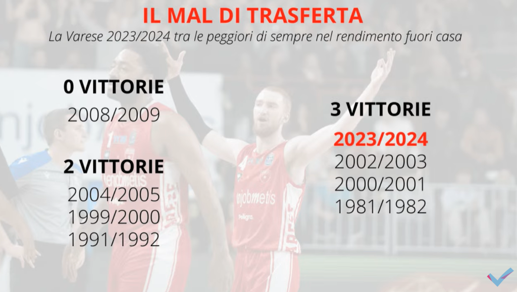 Al centro dell’attenzione, anche il rendimento in trasferta della Openjobmetis, al momento ferma a soli tre successi lontani da Masnago. Il dato è uno dei peggiori della storia della società (in fondo la grafica con i dati).