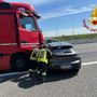 FOTO. Paura in autostrada: camion urta un'auto e la trascina per 70 metri