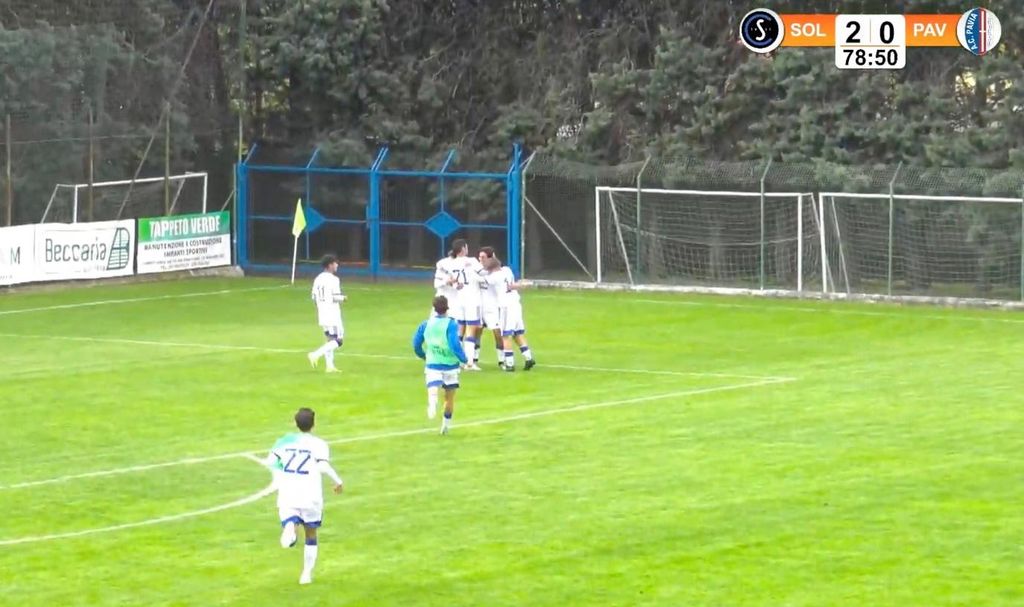 Nel primo tempo monologo nerazzurro: sfiora il gol Riceputi, ma il suo tiro termina sul palo, poi un altro paio di folate offensive trovano pronto il portiere ospite Cincilla. Ma il gol è nell'aria, e arriva al minuto 39: svirgolata di Ioance che inavvertitamente serve Mira, deviazione vincente alle spalle del numero 1 avversario. La ripresa inizia come la prima frazione, e la Solbia trova subito il raddoppio ancora una volta con Mira. Il Pavia è in bambola, ma dal nulla ha anche l'occasione per riaprire il match. Davvero gigantesca la palla gol che si divora Braidich solo davanti a Russo. È il the end pavese, perché i padroni di casa controllano agevolmente e riescono anche ad arrotondare lo score grazie alla bella rete di Manfrè che spacca la rete con un tiro di potenza. I 3 punti danno grande fiducia ai nerazzurri in vista del big-match di domenica prossima a Lazzate.