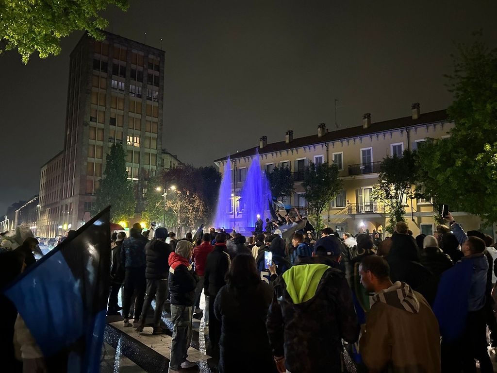 Al triplice fischio parte la festa anche a Busto Arsizio. Sinfonia di clacson, caroselli e fumogeni: il popolo nerazzurro inizia ad affollare il centro, a cominciare ovviamente da piazza Garibaldi, ritrovo abituale dei tifosi che vogliono celebrare un traguardo importante.