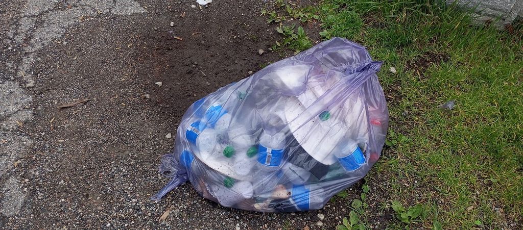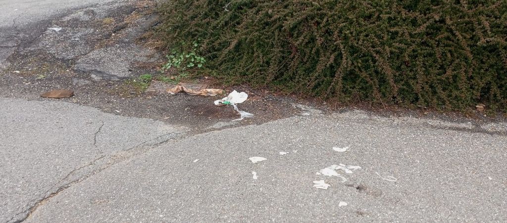 I sacchi sono colmi di bottiglie, piatti di plastica e rifiuti vari, abbandonati uno sopra i cestini, tra l'altro vuoti, e uno abbandonato a lato del piazzale. Inoltre, è presente anche varia spazzatura sparsa per tutta l'area: così è come si presentava ieri mattina, domenica 5 maggio.