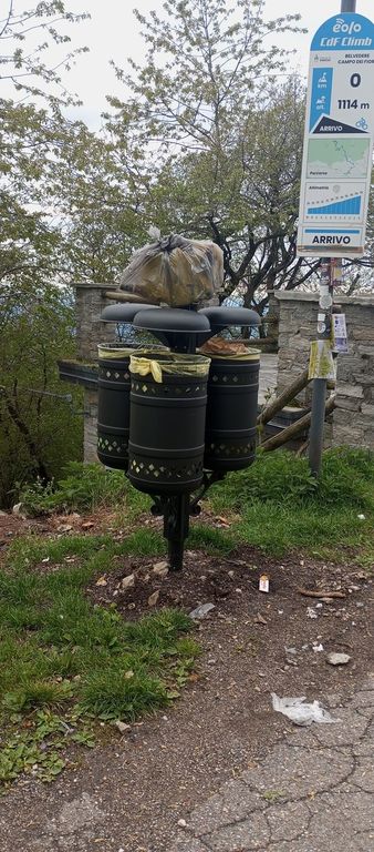 Rifiuti e sacchi della spazzatura abbandonati al piazzale Belvedere del Campo dei Fiori, a Varese.