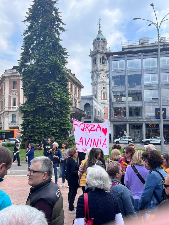 Il corteo passa sotto l'Arco Mera, entra in piazza San Vittore. Qui si dispone a cerchio, tutti si tengono per mano. Parte un applauso e Marta Criscuolo inizia a scandire ad alta voce "Forza Lavinia, forza Lavinia". La piazza risponde. Gli applausi e il coro sembrano non volere finire mai. E' il momento più emozionante, quello dell'amore e della solidarietà che vincono sulla violenza e sull'odio. Marta lo capisce. E finalmente sorride.