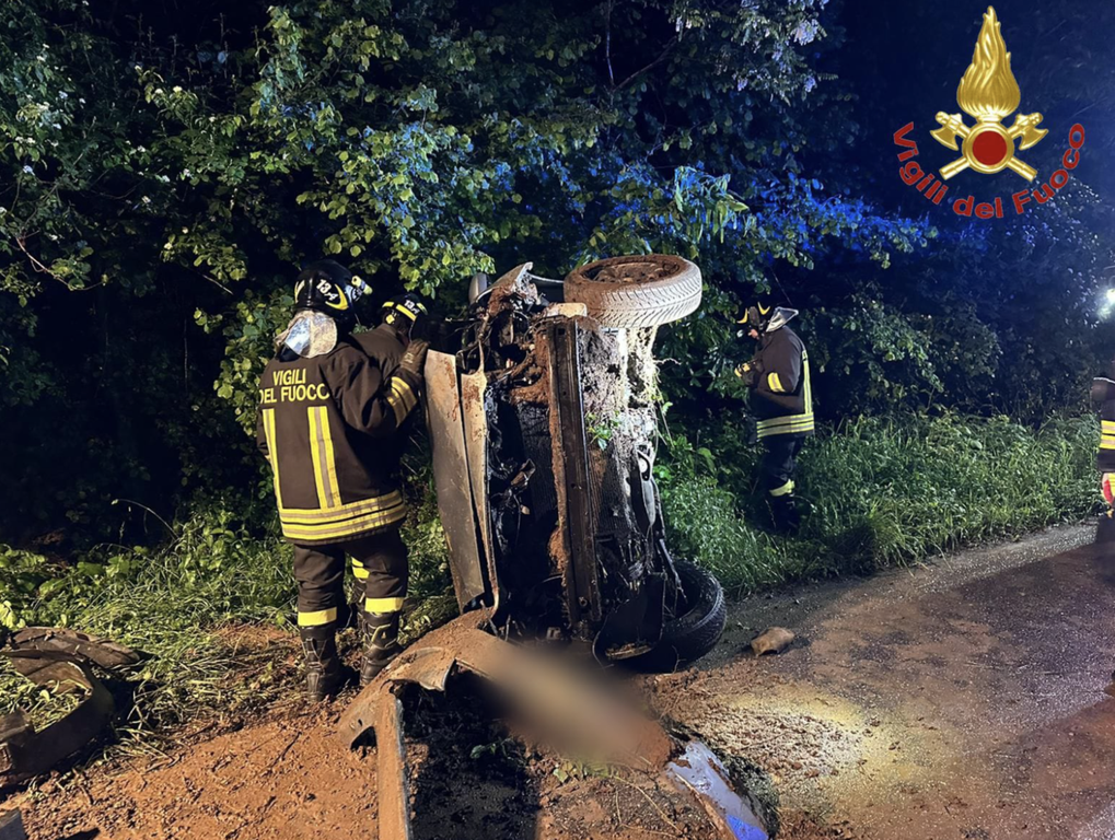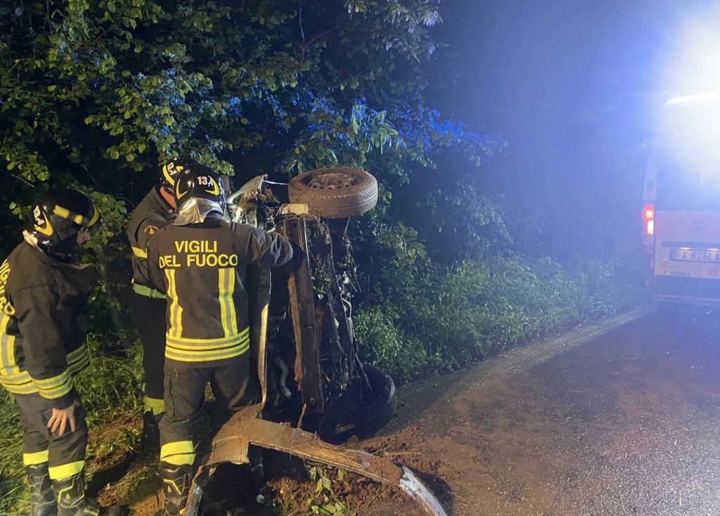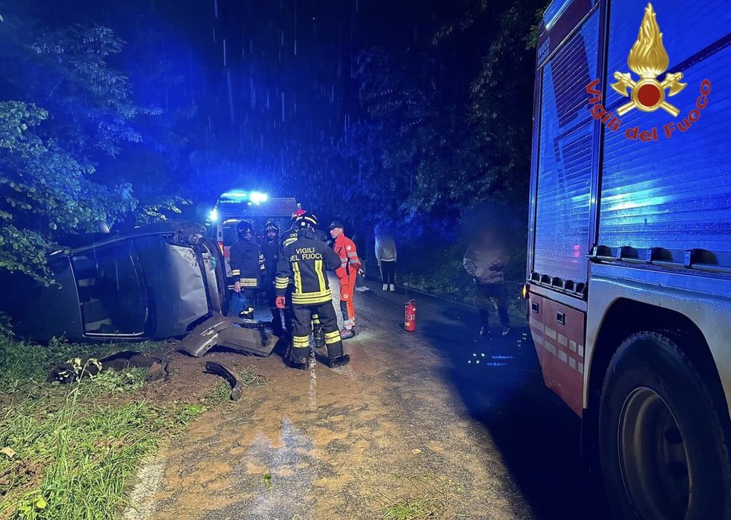FOTO. Auto si ribalta a Venegono Superiore: paura per due ragazzi