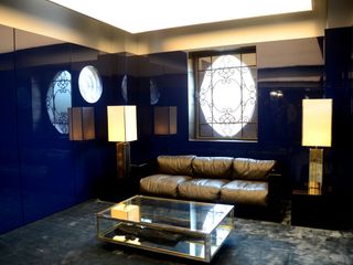 Se al secondo piano il pavimento è in travertino, al primo, la vecchia sala da tè di Zamberletti, è stato mantenuto il parquet originale che i precedenti proprietari avevano ricoperto con la moquette, un’attenzione che Base Blu ha riservato alla tradizione.