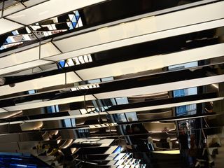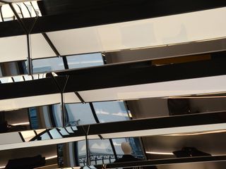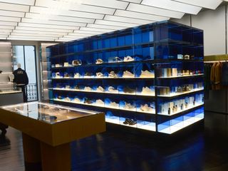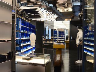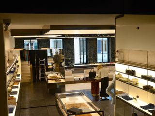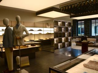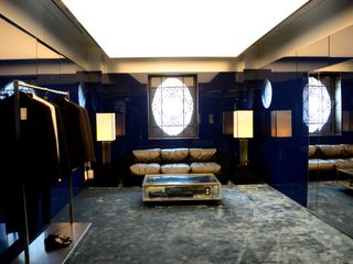 «Lo Studio Dini Cataldi ha impreziosito il bar e il salone al secondo piano con “citazioni” anni ’70 del celebre architetto brasiliano Oscar Niemeyer, artefice del Palazzo Mondadori a Segrate, come il soffitto e l’illuminazione. Qui abbiamo scelto di esporre capi d’abbigliamento più classici, adatti all’uomo maturo, mentre il primo piano è riservato ai giovani, con capi più modaioli, sempre appartenenti a grandi brand come Balenciaga, Prada o Ferragamo. Non mancano i marchi Valentino, Céline e Givenchy, presenti anche nel negozio donna», spiega Marco Chironi.