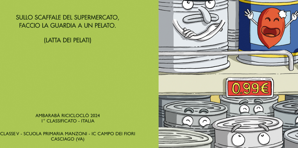 “Sullo scaffale del supermercato, faccio la guardia a un pelato” (soluzione: latta dei pelati) recita l’indovinello ideato dalla classe V della Scuola Primaria Manzoni di Casciago, che si è aggiudicata il primo posto del progetto di educazione ambientale Ambarabà Ricicloclò promosso da RICREA, il Consorzio Nazionale senza scopo di lucro per il Recupero e il Riciclo degli Imballaggi in Acciaio che fa parte del sistema CONAI.