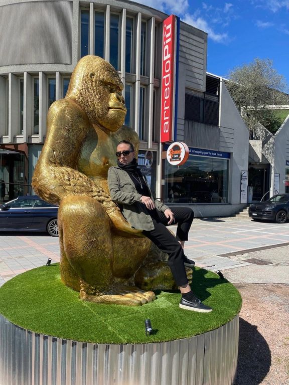 Svelato il significato del gorilla dorato vicino alla rotonda di viale Belforte. Si tratta di un'iniziativa del negozio di arredamento "ArredoPiù" per celebrare i 50 anni di attività.