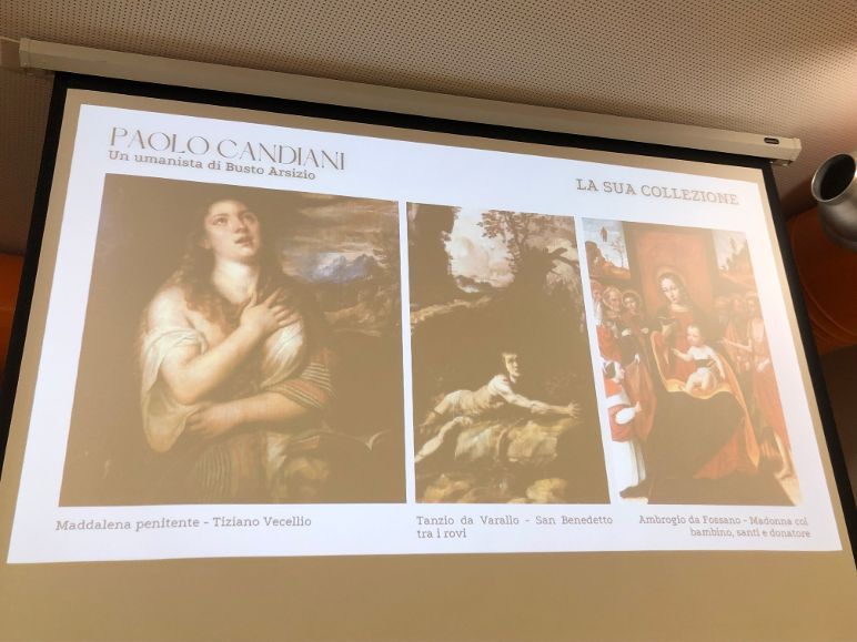 Con precisione ha raccontato le tappe più importanti della storia dell’architetto che ha gettato la prima pietra. Ha parlato del suo passato di industriale cotoniero, della passione per la pittura coltivata con il maestro Tallone di Brera, un retaggio artistico che resterà sempre vivo nella vita di “Paolino”. «Lasciati gli stabilimenti ai fratelli – ha raccontato Paciarotti – diventa architetto al Politecnico di Milano. Progetta tra l’altro il palazzo Affari di piazza Garibaldi. Negli anni Trenta, quando il cotonificio raggiunge l’apice, lui inizia una collezione d’arte con quadri di livello (in foto), tra cui una Maddaleno di Tiziano. Era un umanista di notevole interesse culturale. Diventa presidente dell’Accademia di Brera».
