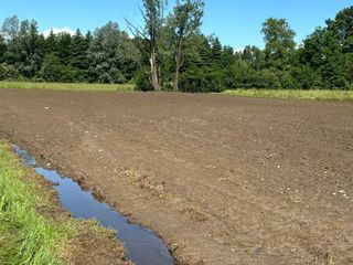 Il varco principale da cui l'acqua fuoriesce si trova nel punto dove l'argine è stato ridotto: da lì, non solo allaga i campi già seminati, oltre a tutti i prati circostanti, riempiendoli di tronchi, sassi e altri scarti del torrente (e qui si aprirebbe il capitolo della pulizia dei corsi d'acqua e delle risorse necessarie che servirebbero per fare manutenzione: perché i Comuni non vengono sostenuti in queste opere fondamentali per cui non hanno fondi?), ma erode anche la terra - in alcuni punti mancano 15 centimetri di terreno - rendendo quasi impossibile la possibilità di una nuova semina, tra l'altro fattibile solo dopo un periodo di sole che possa asciugare il suolo. E se poi la Roggia fuoriuscisse nuovamente?