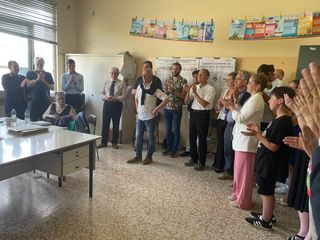 Fuori dal seggio dopo la proclamazione l'incontro con la prima cittadina uscente Silvana Alberio per le congratulazioni e il simbolico passaggio di consegne.
