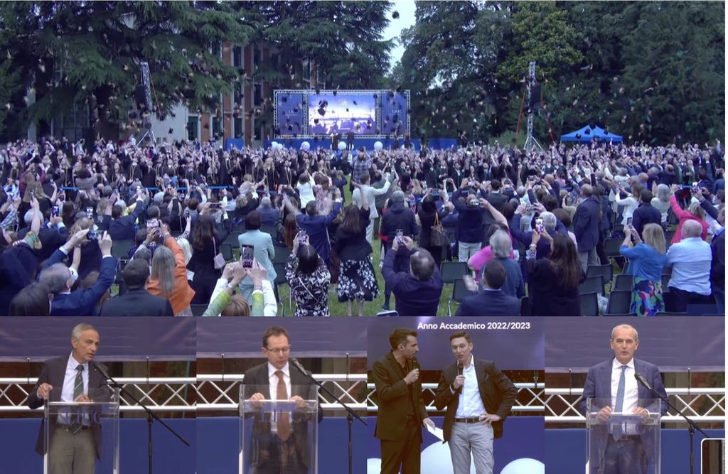 Sul palco, presentati dallo speaker di Radio105 Bryan Ronzani, il presidente dell'ateneo Riccardo Comerio, Richard Arsan, amministratore delegato, il rettore Federico Visconti, e ancora Chiara Mauri direttore Scuola Economia e Management, Alberto Malatesta, Direttore Scuola di Diritto, Tommaso Rossi direttore Scuola di Ingegneria Industriale, Giulia Rege rappresentante studenti cda Liuc, Luca Cremona presidente Liuc Alumni. C'erano oltre 1.400 persone, fra laureati, famiglie, docenti, personale, autorità nel parco dell'ateneo.