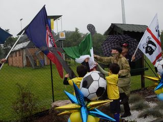 Nonostante la pioggia battente, numerose persone, compresa una delegazione di tifosi del Cagliari, ha partecipato sabato mattina alla cerimonia di intitolazione del campo sportivo di Leggiuno al grande campione di casa Gigi Riva.
