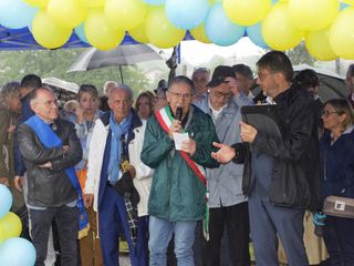 Nicola e Mauro Riva emozionati e accompagni dalle rispettive famiglie, nel loro intervento hanno più volte ribadito la loro vicinanza a Leggiuno, come luogo indimenticabile dei ricordi legati alla loro infanzia con il papà e con gli zii Paolo e Fausta.