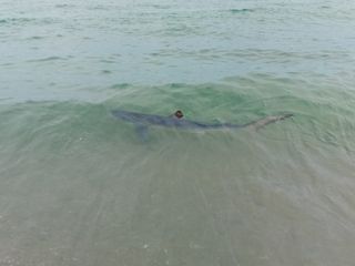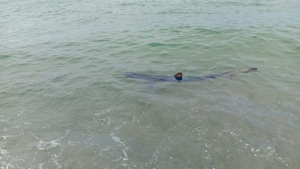 Lo squaletto è stato avvistato dal bagnino dei Bagni Umberto questo pomeriggio.