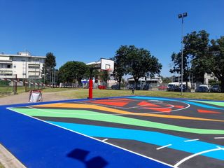La gratuità dell’impegno, del resto, è tema ricorrente nella storia del restyling e coinvolge anche Francesca Cassani. «Ha sposato la causa» sottolinea Chiara Lorello, mentre l’artista racconta: «Conoscevo Niccolò e non ho mai trovato tanta passione, tanta forza di volontà come quelle che ho visto in questo caso, tra parenti, amici e studenti. A centrocampo c’è il logo dell’associazione con la palla da basket. Da lì partono dei raggi che tagliano tutta la superficie. Sono di colori accesi su fondo nero. Il contrasto vuole trasmettere energia, fare capire che quella di Niccolò c’è ancora, è con noi».