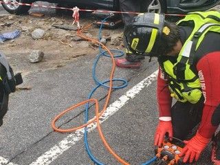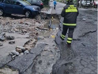 Soccorritori in azione in valle Anzasca dopo che i rii che hanno riversato detriti e provocato allagamenti nella frazione di Staffa. La viabilità è compromessa a causa dell'erosione dell'asfalto in molte strade