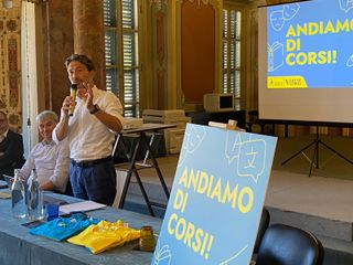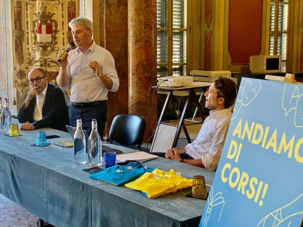 "Andiamo di corsi!": in un Salone Estense stracolmo è stata presentata questa mattina la nuova vita di Varese Corsi (svelato, finalmente, un arcano: si tratta di due parole da scrivere staccate) che, per i prossimi dieci anni, verrà gestito dai vincitori del bando (il raggruppamento di imprese Yop!, Consel e Florida) rappresentati da Marcello Vitella. Insieme al sindaco Davide Galimberti e all'assessore alla Cultura, Enzo Laforgia, Vitella ha svelato in maniera diretta e coinvolgente le novità - nel solco di una tradizione che dura da quarant'anni ed è amatissima dai varesini - di un appuntamento unico nel panorama nazionale, capace di coinvolgere migliaia di persone nel modo più popolare che si conosce, partendo dal "basso".