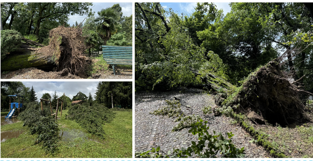 Il violento downburst di questa mattina ha devastato la parte alta del salotto verde di Varese. Le foto scattate da Gianluca Bertoni lasciano senza parole: «Circa una ventina di piante sradicate e altrettante pericolanti»