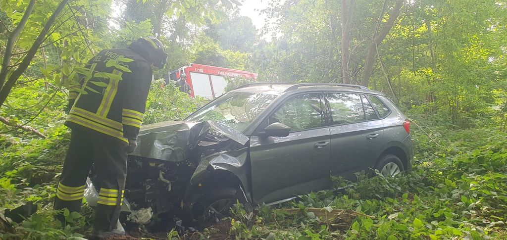 FOTO. Auto fuori strada al Brinzio nei pressi di Castello Cabiaglio