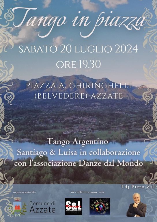 Il Comune di Azzate lancia per sabato 20 luglio l’evento Tango in Piazza, una serata danzante che si terrà al Belvedere, in piazza Ghiringhelli, dalle 19.30.