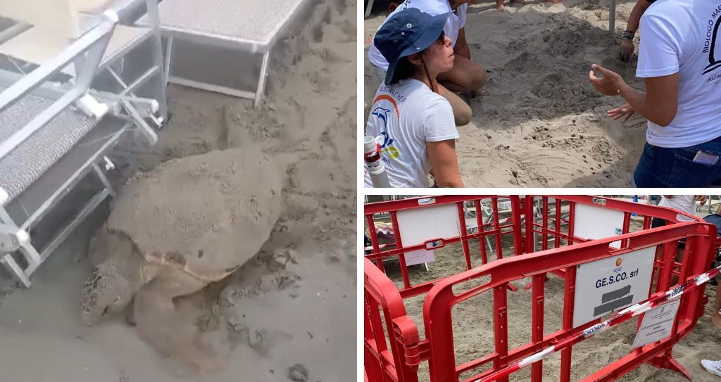 L’esemplare di Caretta Caretta, come si può vedere nel video, cammina verso il mare, dopo la deposizione delle uova presso i Bagni Londra, per la gioia dei bimbi che hanno poi giocato seguendone la scia e le orme lasciate dall’animale.