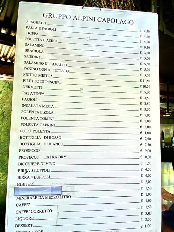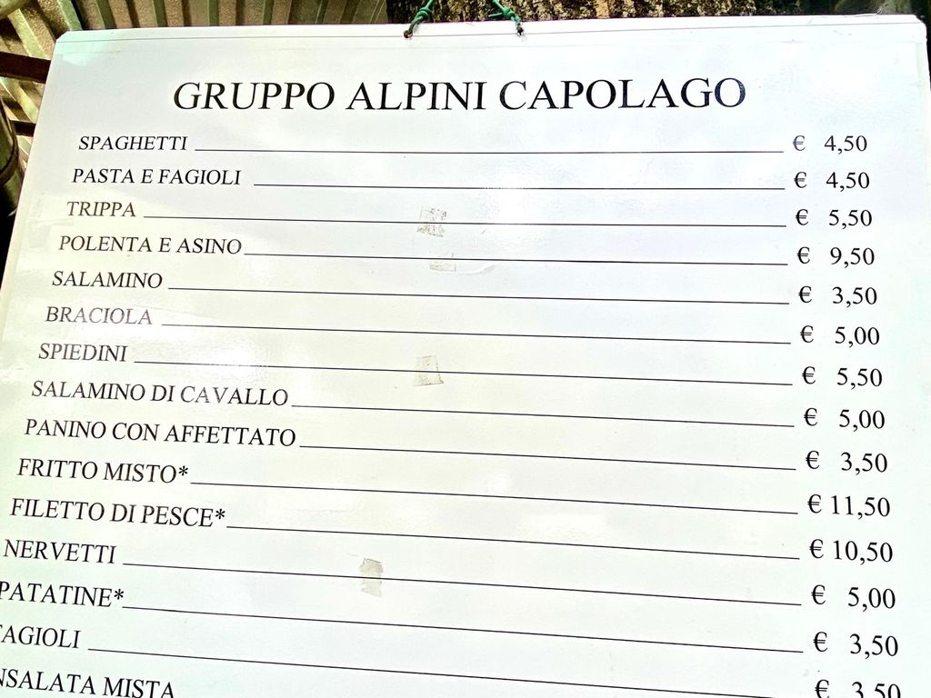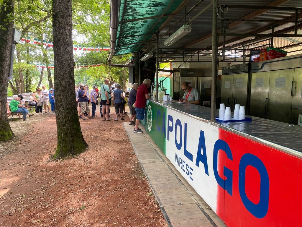 La 65ª edizione della festa, partita ieri sera e che continuerà fino a domenica prossima, 28 luglio, offre cibo e bevande agli stessi prezzi dello scorso anno sia a pranzo dalle 12 che a cena a partire dalle 19, ed è già un successo clamoroso: la location, con i tavoli sistemati nel bosco (basta scegliersi il numero e comunicarlo al banco per essere serviti da piccoli e grandi volontari) e i piatti tradizionali degli alpini di Capolago - da polenta e asino a pasta e fagioli, da salamini e braciola al fritto misto, dai nervetti a polenta e zola, tomino o caprini - accompagnano i varesini in questa che è una cerimonia familiare nelle torride giornate d'estate e che ha visto passare il testimone dai nonni ai nipoti.