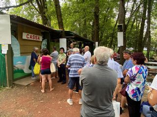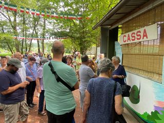 Una fila composta e impaziente ben prima di mezzogiorno, orario di apertura della cassa e delle cucine, arrivava già quasi sotto lo striscione del Gruppo Alpini Capolago: accarezzati da una leggera brezza, tantissimi varesini in questa calda e afosa domenica in cui il sole sta scomparendo stanno partecipando a uno dei riti più attesi e gustosi dell'estate, ovvero la Festa degli Alpini di Capolago (clicca QUI per tutte le info).