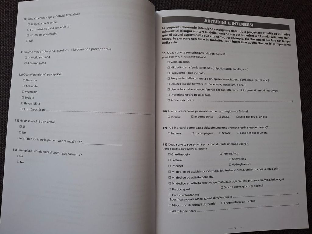 Dopo l’apertura di uno sportello orientativo (ai Molini Marzoli, a disposizione il martedì dalle 9 alle 12 e il mercoledì dalle 14 alle 17), l’avvio dell’iniziativa “Attraverso il quartiere” e l’attivazione delle classiche palestre a cielo aperto, ora si prova a mettere a fuoco bisogni, abitudini e interessi attraverso la voce stessa degli over 65. Lo strumento (vedi a titolo di esempio le immagini in fondo all’articolo) è un questionario, anonimo, messo a punto con Liuc Business School, che sarà a disposizione nelle sedi delle associazioni coinvolte, in Comune (biblioteca, assessorato in via Roma, portineria di palazzo Gilardoni, servizi cimiteriali, anagrafe, ufficio tributi, Urp), farmacie comunali e negozi (cartoleria Tagliabue, Newlook, Sarabanda, CentroVista Besozzi, pasticceria Campi, fioreria Moretti, Andreella photo, ristorante pizzeria Capri).