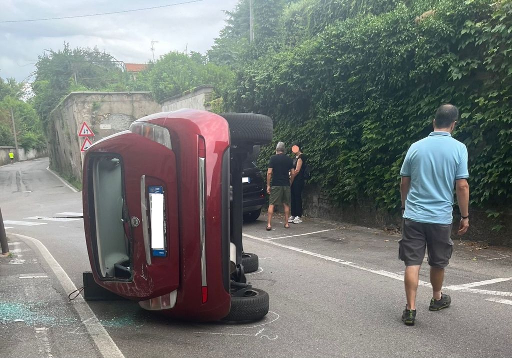 FOTO. Incidente con ribaltamento a Castellanza: grosso spavento per una 74enne